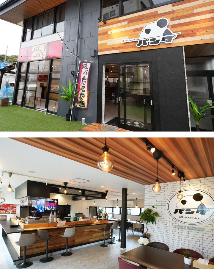 創業28年『たこやき風風』の白浜店『Takoyaki & Dining パンダ』はパンダの看板が目印。